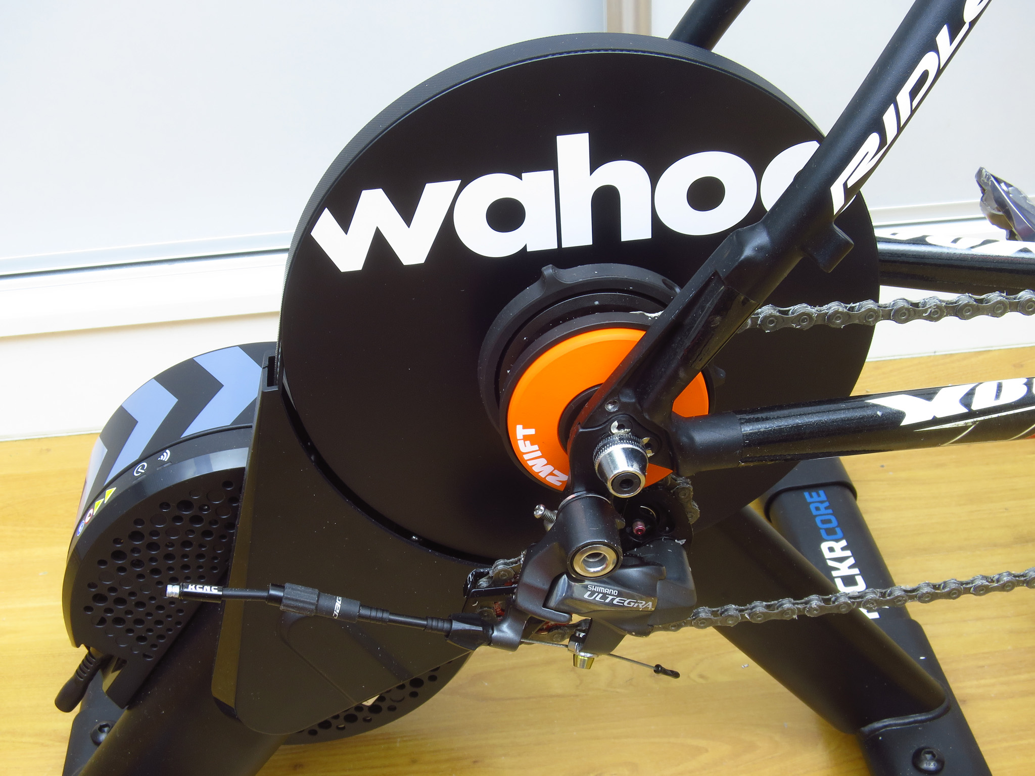 na Wahoo Kickr Core 2. Postanowiłem także skorzystać z wirtualnej zmiany przełożeń Zwift Cog/Click.